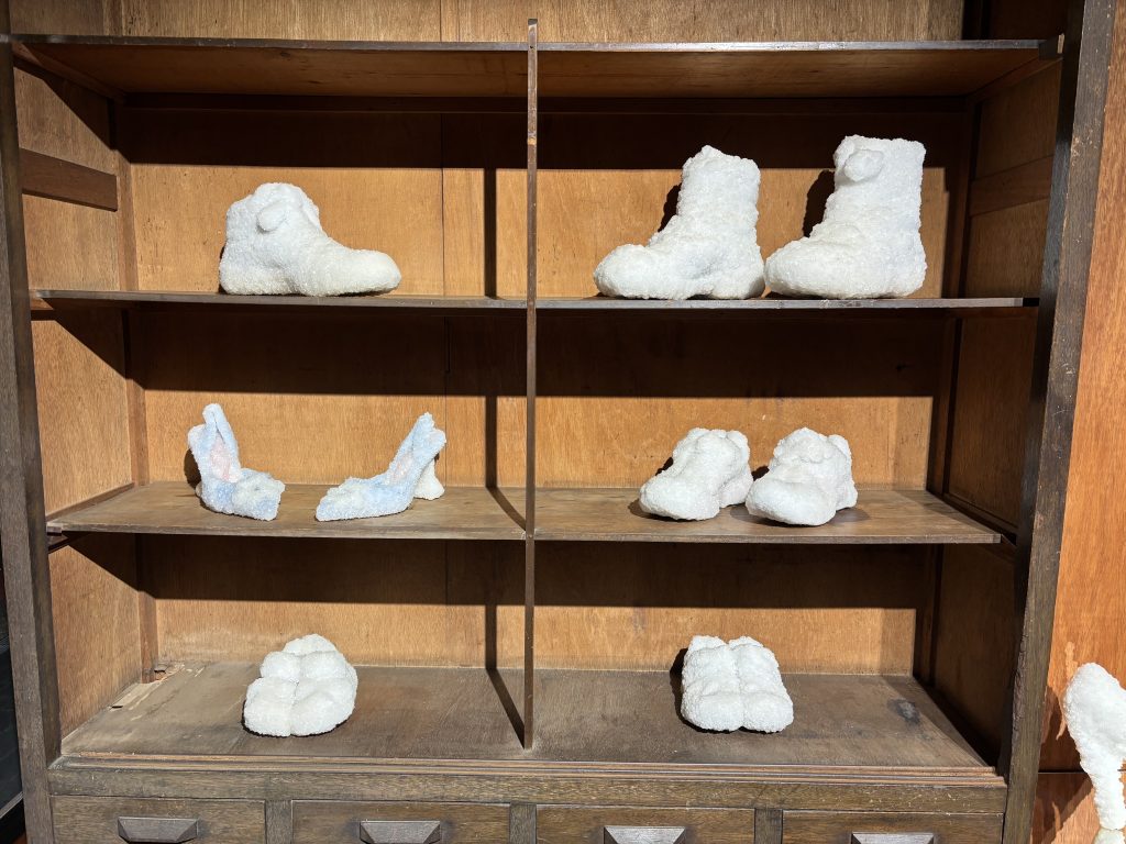 かつて宇多津町で栄えていた、塩づくりとのつながりを、感じられる作品である。作者が幼いころに感じた、戦争の記憶が、作品となっている。物の儚さや、塩に囲われているだけでもとになった靴を見ていてるだけでは感じられない神秘的なものを、感じた。