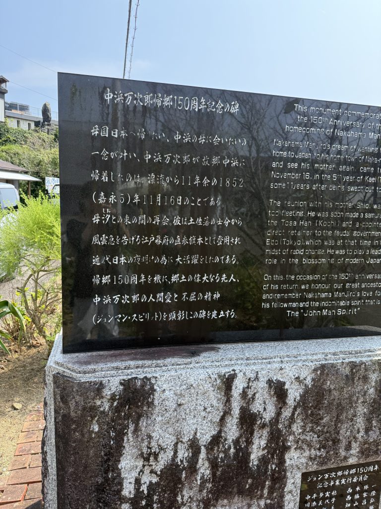 以下の写真は、土佐清水市にある『中浜万次郎帰郷150周年記念の碑』である。