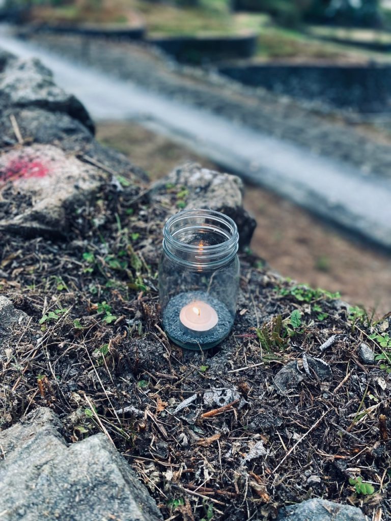 なるほど、確かにこれは圧巻だ。遠巻きにではあるが、その荘厳な景観からは何百年もの間人々の命を繋いできた「生の拠点」としての息遣いが感じられる。早速私たちは棚田に上らせていただき、その縁にロウソクの入った瓶を一つ一つ丁寧に設置していった。落とさないように、そしてうっかり自分も落ちないようにと細心の注意を払う。