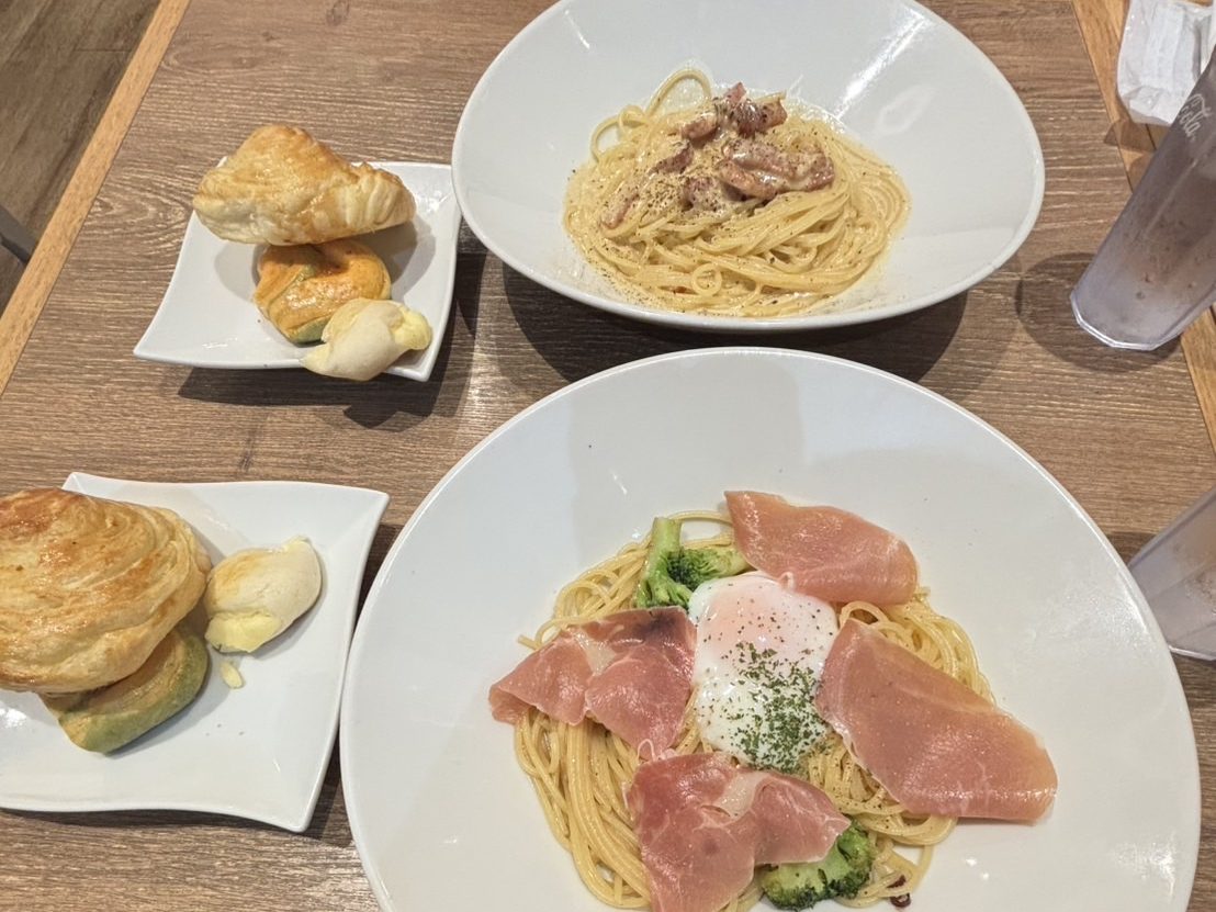 パンは一つ一つが小さめで、メロンパン、ハムチーズパン、アップルティーパン、チョコチップパン、スイートポテトパン、クロワッサン、チョコクロワッサン、サツマイモパン、ブルーベリーパン、カボチャプリンパン、などなど、書ききれないくらい種類がとにかく豊富。
