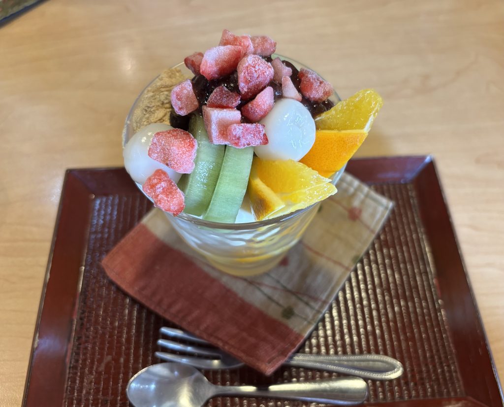 私が訪れたのは暑い夏場のため、冷たいあんみつを選びました。白玉はもちもちで、あんことバニラアイスの組み合わせは絶品でした。果物も甘くみずみずしく、熱くなった体に染みわたりました。次に訪れた際は、様々な土佐茶を味わいたいと思います。